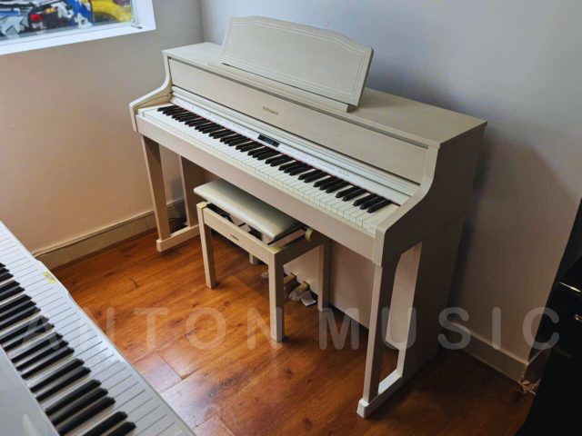 Roland HP605GP MW với hậu tố “MW” – Milky Wood là một màu trắng sữa vô cùng trang nhã và tinh tế. Đây không phải là một màu trắng tinh khôi, lạnh lẽo và có phần chói gắt, mà là một tông màu trắng ngà, có một chút ấm áp, mang lại cảm giác nhẹ nhàng, thanh lịch và sang trọng. Màu sắc này đặc biệt phù hợp với các phong cách nội thất hiện đại, tối giản (Minimalism), Scandinavian, Japandi, hoặc bất kỳ không gian nào muốn tạo ra một điểm nhấn tươi sáng nhưng không quá phô trương.