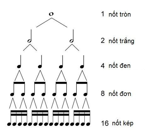 Giá trị nhịp của các nốt nhạc phổ biến: