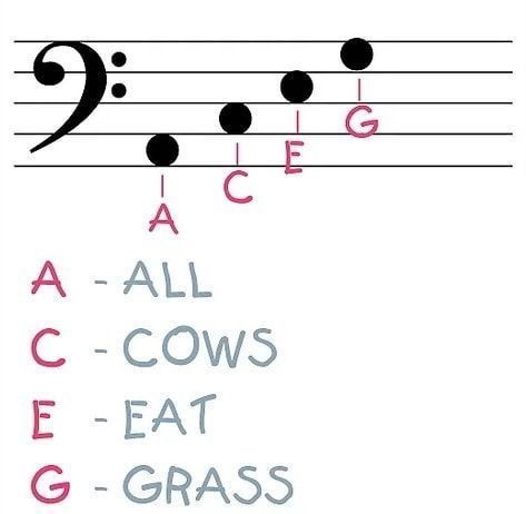 - Các nốt trong khoảng trống: Các nốt trong các khoảng trống giữa các dòng thường được nhớ bằng câu “All Cows Eat Grass” (La, Đô, Mi, Sol).