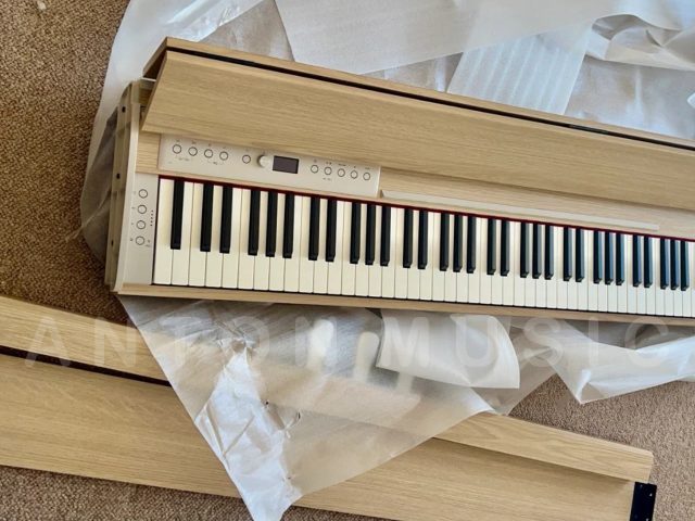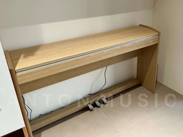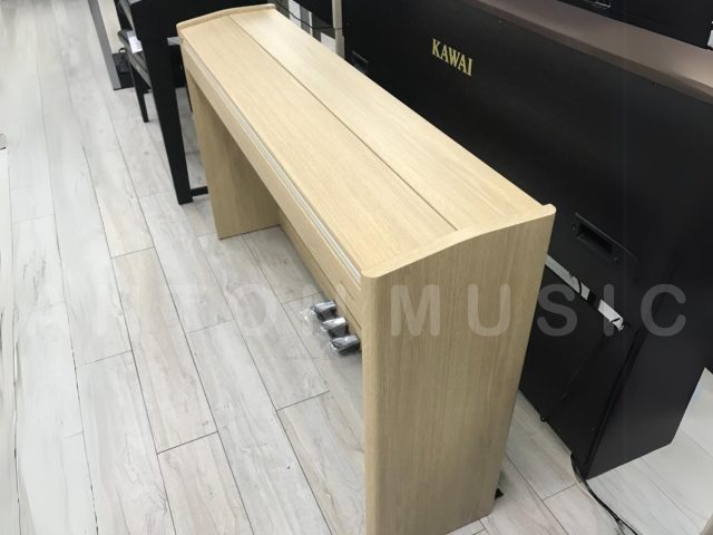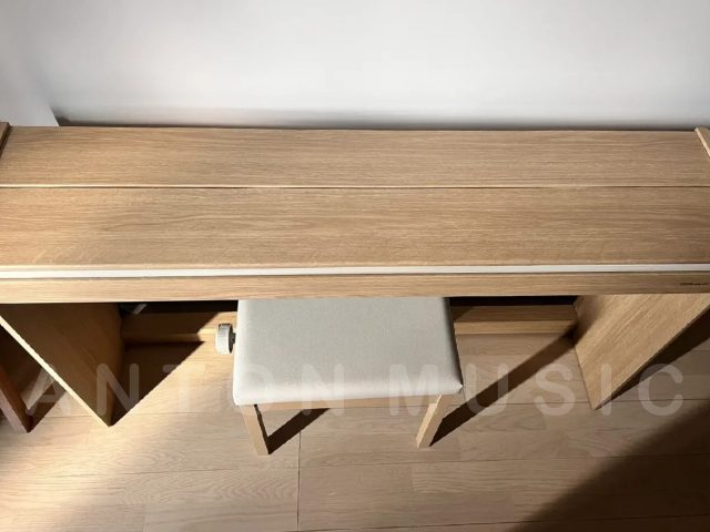 Bên ngoài là lớp sơn phủ Veneer vân gỗ sáng màu tạo cảm giác thân thiện, dễ phối với nội thất nhưng không bị lỗi thời. Các cạnh đàn được bo nhẹ, tạo cảm giác an toàn khi nhà có trẻ nhỏ hoặc khi thường xuyên tiếp xúc gần. Ngoài ra, nhờ lớp phủ và kiểu hoàn thiện mờ vừa phải, cây đàn không để lại dấu vân tay rõ rệt sau khi sử dụng là một chi tiết nhỏ nhưng mang lại sự dễ chịu trong việc bảo quản và lau chùi. Chân đàn và pedal cũng được làm từ hợp kim hoặc vật liệu giả kim chắc chắn, sơn phủ tỉ mỉ, tránh hiện tượng bong tróc hoặc rỉ sét theo thời gian.