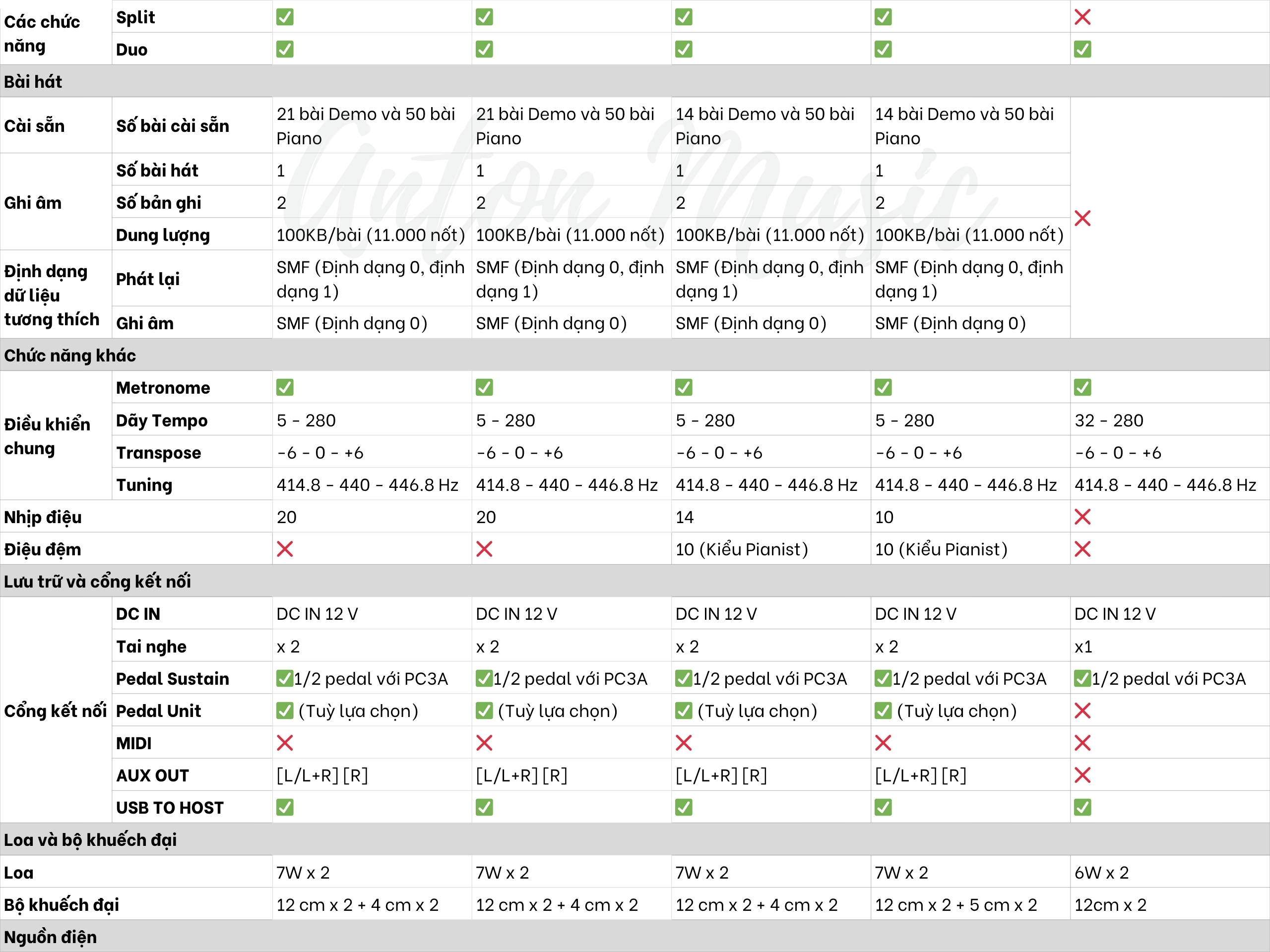 Tất cả model đều có âm thanh ổn định, bàn phím chuẩn luyện tập, thiết kế dễ di chuyển, nên rất thích hợp cho sinh viên nhạc viện, giáo viên dạy tại nhà, hoặc những người yêu nhạc cần cây đàn thứ hai để luyện tập.