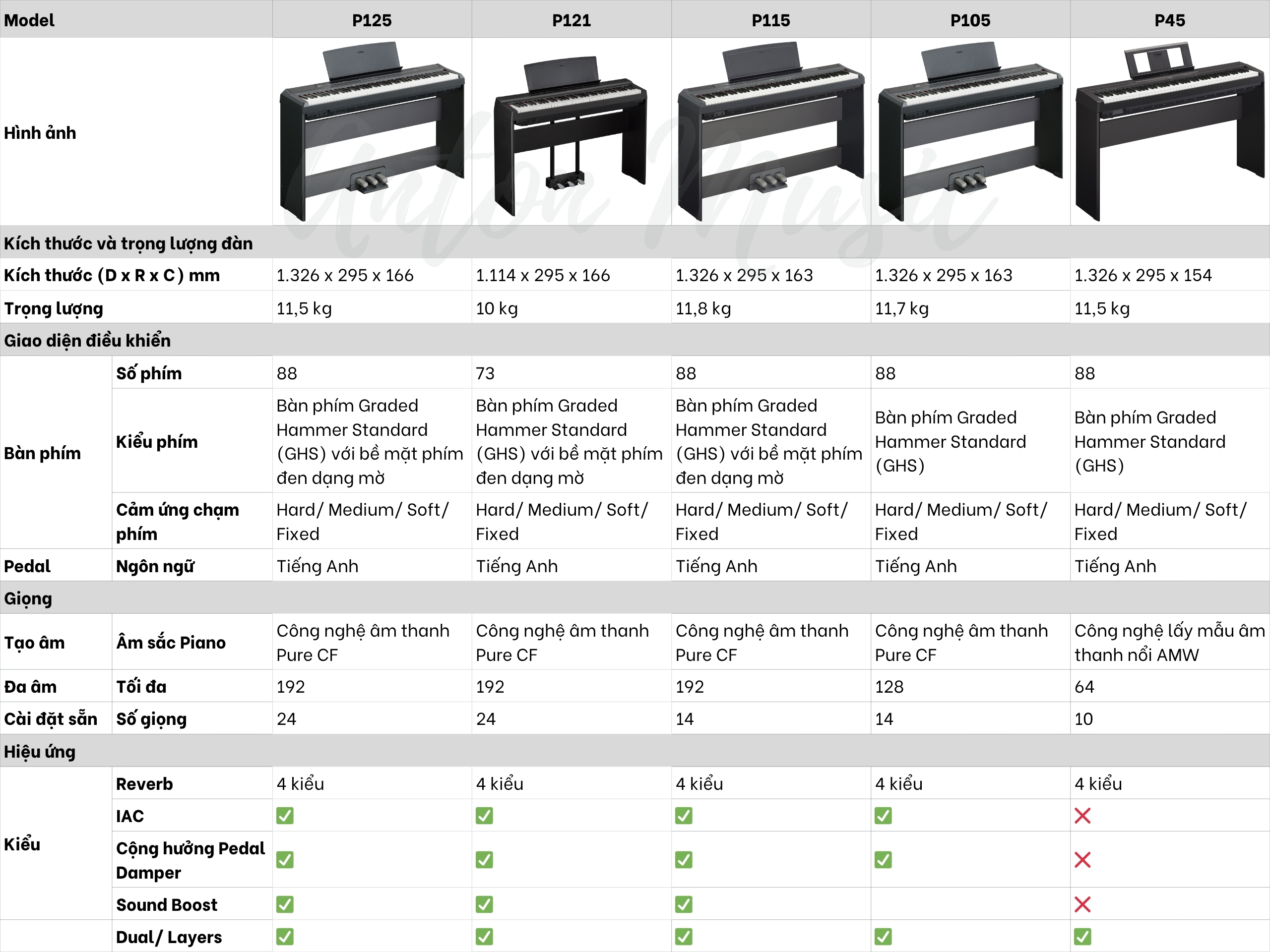 - Polyphony 192 nốt (so với 64 nốt của P45)